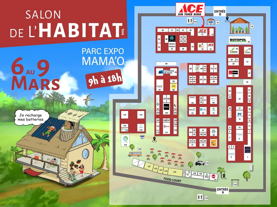 Publié : 27/02/2025 ACE Actus - Nous vous donnons rendez-vous au Salon de l'Habitat 2025 Catégories : ACE Actus , Évènements magasin ACE Sin Tung Hing sera au Salon de l'Habitat du 6 au 9 mars 2025 à Mamao pour vous proposer des remises exceptionnelles, des démonstrations MAKITA, des conseils de pro, le tout dans une ambiance digne d'un Salon de l'Habitat 2025 ! AU PROGRAMME Des offres spéciales salon Des démonstrations d'outils MAKITA Des conseils d'experts pour tous vos projets Des nouveautés à découvrir RETROUVEZ ÉGALEMENT ON SE DONNE RENDEZ-VOUS Parc Expo de Mamao Du 6 au 9 mars 2025 De 9H à 18H